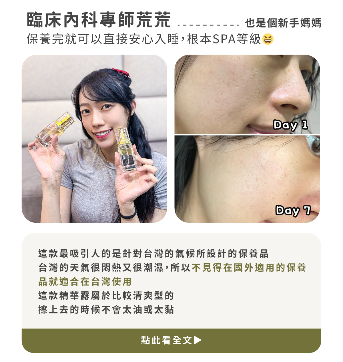 多數外國進口的精華液在研發的時候,並未針對台灣的「氣候」來做考量;台灣屬於海島型氣候,天氣型態悶熱潮濕,而許多乾冷氣候地區的保養品其實並不適合在台灣的濕熱氣候中使用。
